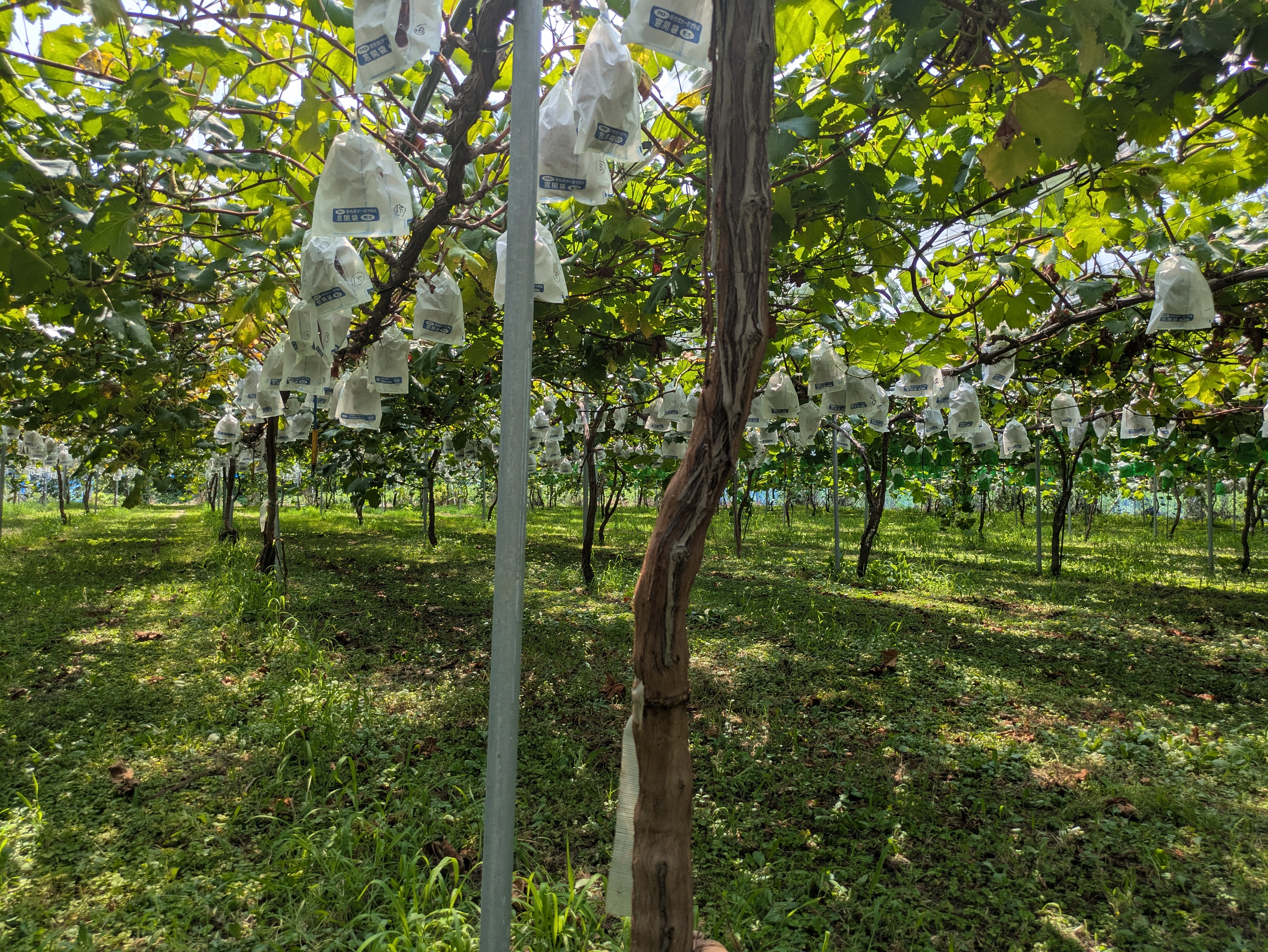ぶどう ぶどうの収穫が始まりました。ピオーネ、クイーンニーナなど。9月からはシャインマスカットやヌーベルローズなどが収穫できます。夏は、桃、梨、ぶどうの収穫があり、フルーツ三昧になってきました。幸せです。
